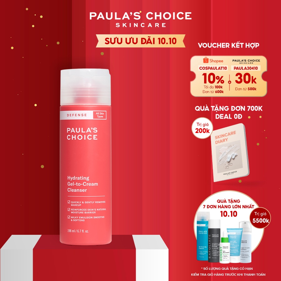 Freeship- Sữa rửa mặt ngăn ngừa tác hại từ môi trường Paula’s Choice Defense Hydrating Gel to Cream Cleanser 198ml 2210 mua tại đây